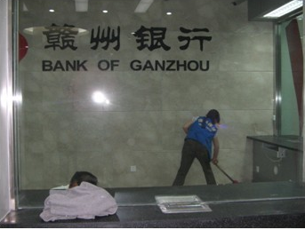 迪邦保潔公司人員正在為“贛州銀行”做開荒保潔